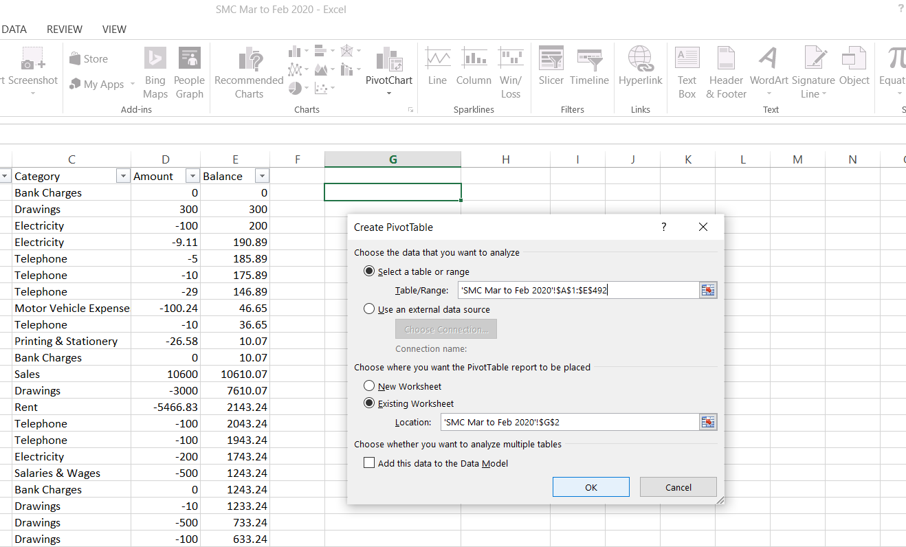However, PivotTables are really useful in summarising and making sense of a lot of data and they are really simple to do. Just follow these few simple steps:-